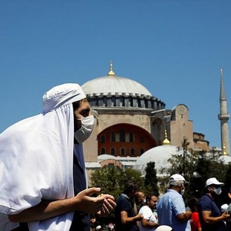 Χιλιάδες Τούρκοι συγκεντρώθηκαν στο εσωτερικό της Αγίας Σοφίας στην Κωνσταντινούπολη, νωρίς το πρωί της Παρασκευής για την πρώτη μουσουλμανική προσευχή στο χώρο, από τότε που ο Πρόεδρος της χώρας, Ρετζέπ Ταγίπ Ερντογάν κήρυξε τζαμί το μνημείο της Παγκόσμιας Πολιτιστικής Κληρονομιάς της UNESCO.
