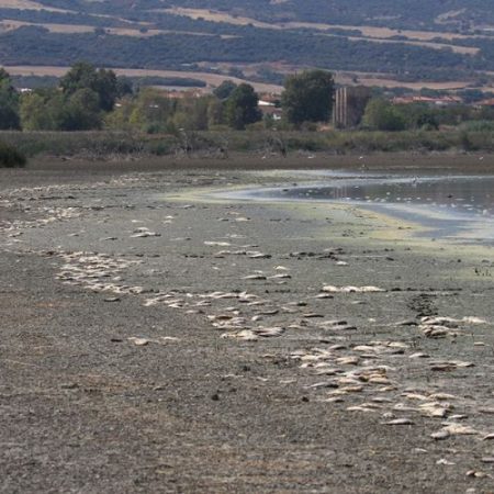 Χιλιάδες νεκρά ψάρια στη λίμνη Κορώνεια – μειώθηκε η στάθμη του νερού