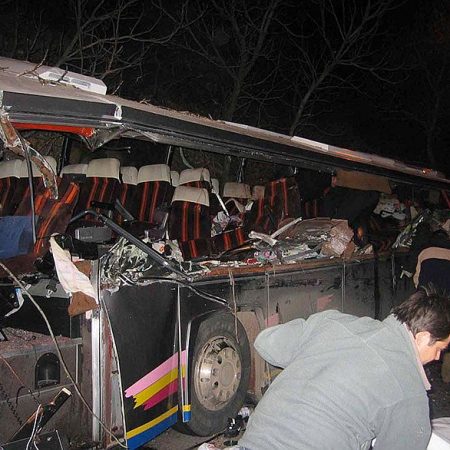 Οι φωτογραφίες από τον τόπο του δυστυχήματος φανέρωναν το μέγεθος της τραγωδίας, καθώς τα νοβοπάν που μετέφερε η νταλίκα είχαν κόψει στα δύο το πούλμαν.