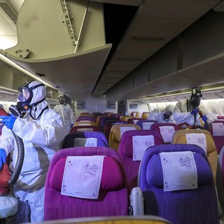 Αεροδρόμια και αεροπορικές εφαρμόζουν τακτικούς ελέγχους στη θερμοκρασία του πληρώματος και -σε αρκετές περιπτώσεις- και των επιβατών. Στους χώρους των αεροδρομίων έχουν τοποθετηθεί θερμικά σκάνερ ειδικά γι’ αυτόν τον σκοπό. Η χρήση μάσκας επιβάλλεται αυστηρά τόσο στις ΗΠΑ, όσο και στην Ευρώπη, ενώ σύμφωνα με τους κανονισμούς που υιοθετούν οιρισμένοι αερομεταφορείς -όπως η Ryanair- οι επιβάτες θα πρέπει να ζητούν προκαταβολικά… άδεια για τη χρήση της τουαλέτας εν ώρα πτήσης, ώστε να αποφευχθεί ο συνωστισμός.