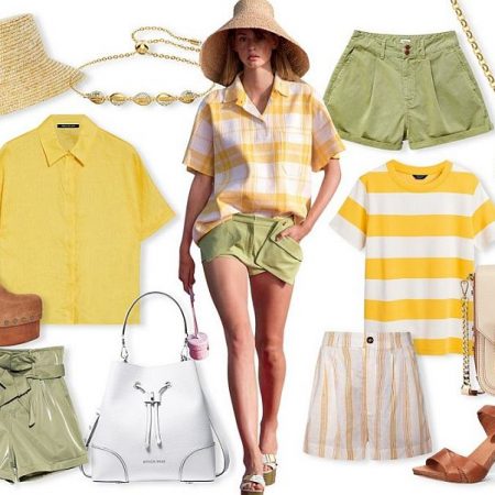 Αυτή τη σεζόν ποντάρουμε σε δροσερά πουκάμισα ή T-shirts σε κίτρινο χρώμα και χακί σορτσάκια