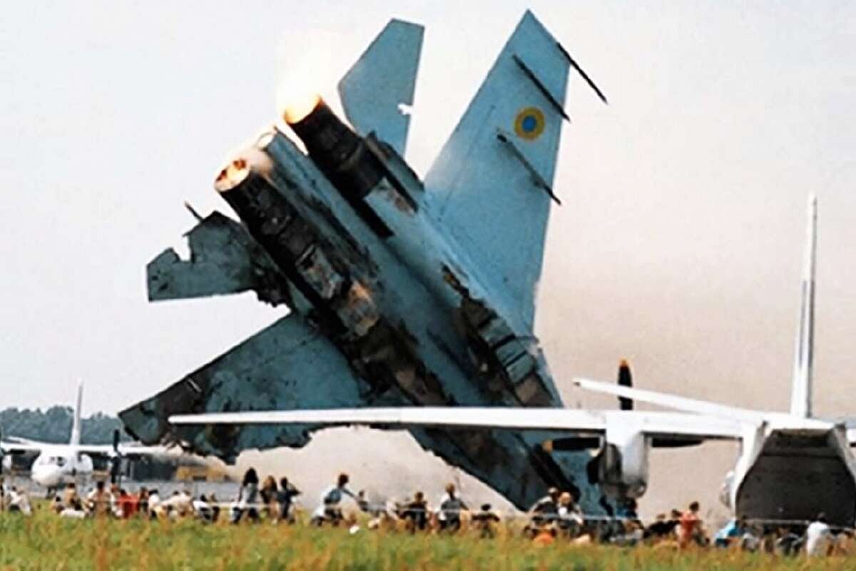 Ένα διθέσιο S-27, το οποίο πετούσαν οι Volodymyr Toponar και Yuriy Yegorov, κατά τη διάρκεια ενός ελιγμού, κατέπεσε επάνω σε θεατές σκοτώνοντας 77 ανθρώπους, μεταξύ των οποίων και 28 παιδιά, και τραυματίζοντας ακόμη 543. Παραμένει έως σήμερα το πιο πολύνεκρο δυστύχημα αεροπορικής επίδειξης στον κόσμο.
